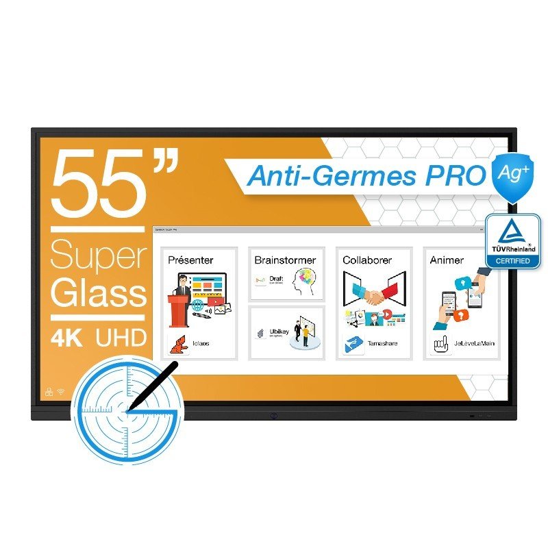 Se entrega con un módulo OPS i5. La pantalla interactiva Speechi Touch Pro ofrece además del paquete Microsoft Office 2016, un paquete de programas con todas las funcionalidades colaborativas que esperan las empresas (brainstorming, presentaciones , animaciones, colaboraciones a distancia, etc, y una cámara Full HD para sus visioconferencias.