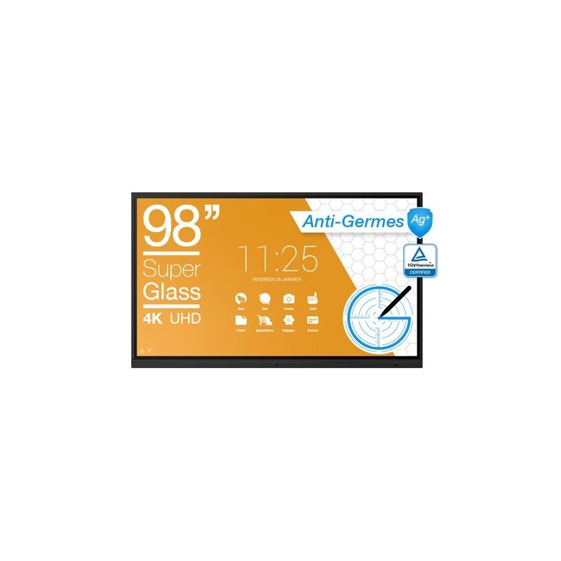 Su fácil utilización y su autonomía, junto a sus capacidades técnicas punteras (20 puntos de contacto simultáneos, una resolución 4K perfecta, sistema Android 8, un rico sistema de conexiones, etc.) hacen de la pantalla interactiva SpeechiTouch SuperGlass de 98 pulgadas una herramienta imprescindible a nivel profesional.