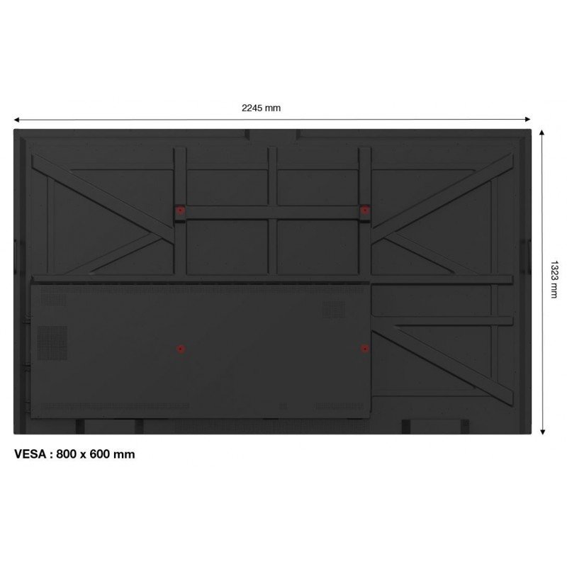 El impresioante tamaño de la pantalla táctil de 98” no le resta elegancia, ya que su espesor total no sobrepasa los 9 cm pudiendo ocupar una pared sin causar problemas estéticos.
